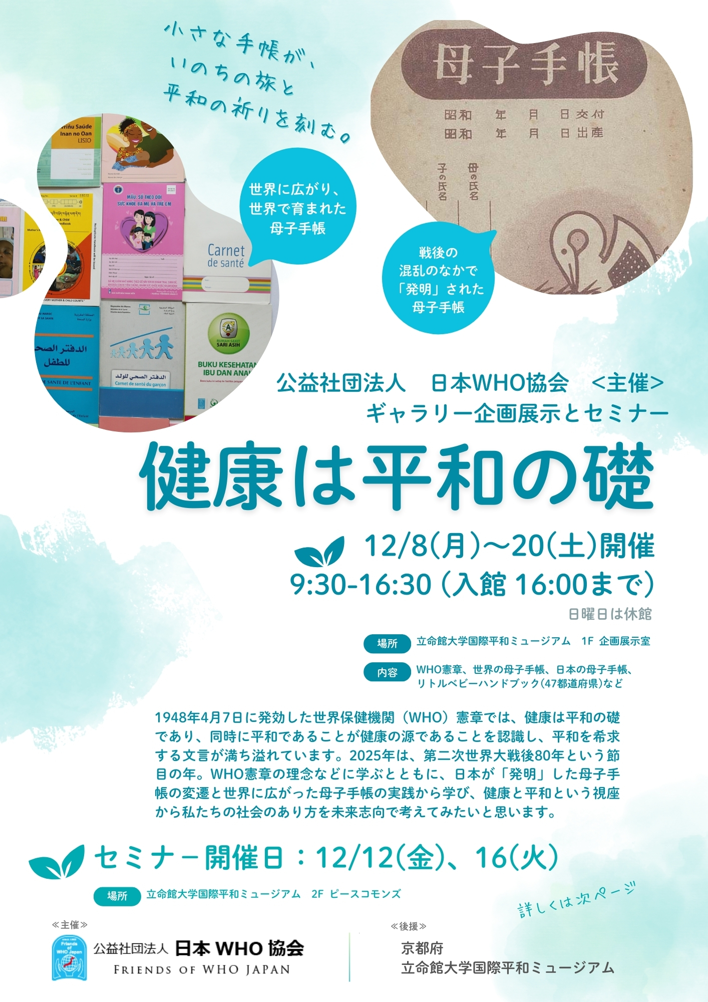 企画展示 ・ セミナーについては、日本WHO協会の問い合わせフォームよりお問い合わせください。